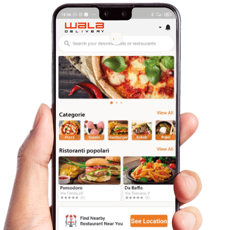Scegli tra i punti vendita vicini a te e ricevi i prodotti comodamente a casa tua dal WalaRider del ristorante
